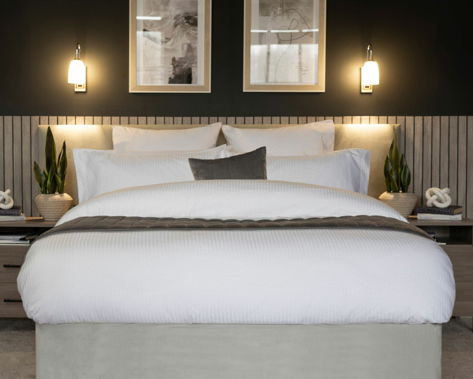 Aceasta lenjerie pentru hotel este confec ionata din damasc microfibra satinat cu dunga de 1 cm, este un produs deosebit ca aspect i calitate, ce ofera o atingere matasoasa pentru un somn cu adevarat odihnitor.Dungile esute elegant n textura materialului ofera un aer sofisticat ce se adapteaza oricarui stil de interior.Reprezinta recomandarea noastra pentru hotelurile de minimum 3 i 4 stele precum i pensiunile care doresc un confort High Class pentru clien ii lor.