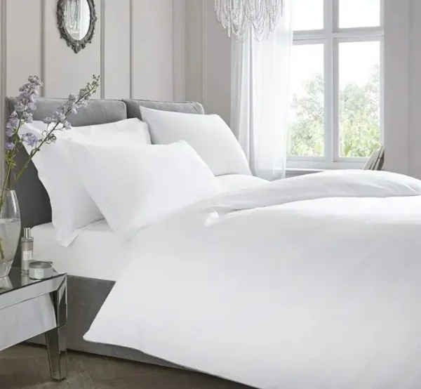 Lenjeriile de pat sunt confectionate in atelierul nostru dintr-o tesatura fina, tip percale. Aceasta panza este simpla, fara model, mata, realizata prin teserea firelor de bumbac si poliester. Complexitatea tesaturii si procesului de prelucrare, ii confera o rezistenta aparte si un aspect deosebit. Materialul are o densitate mare, ceea ce ii da grosime tesaturii, insa textura ramane foarte fina si placuta la atingere.