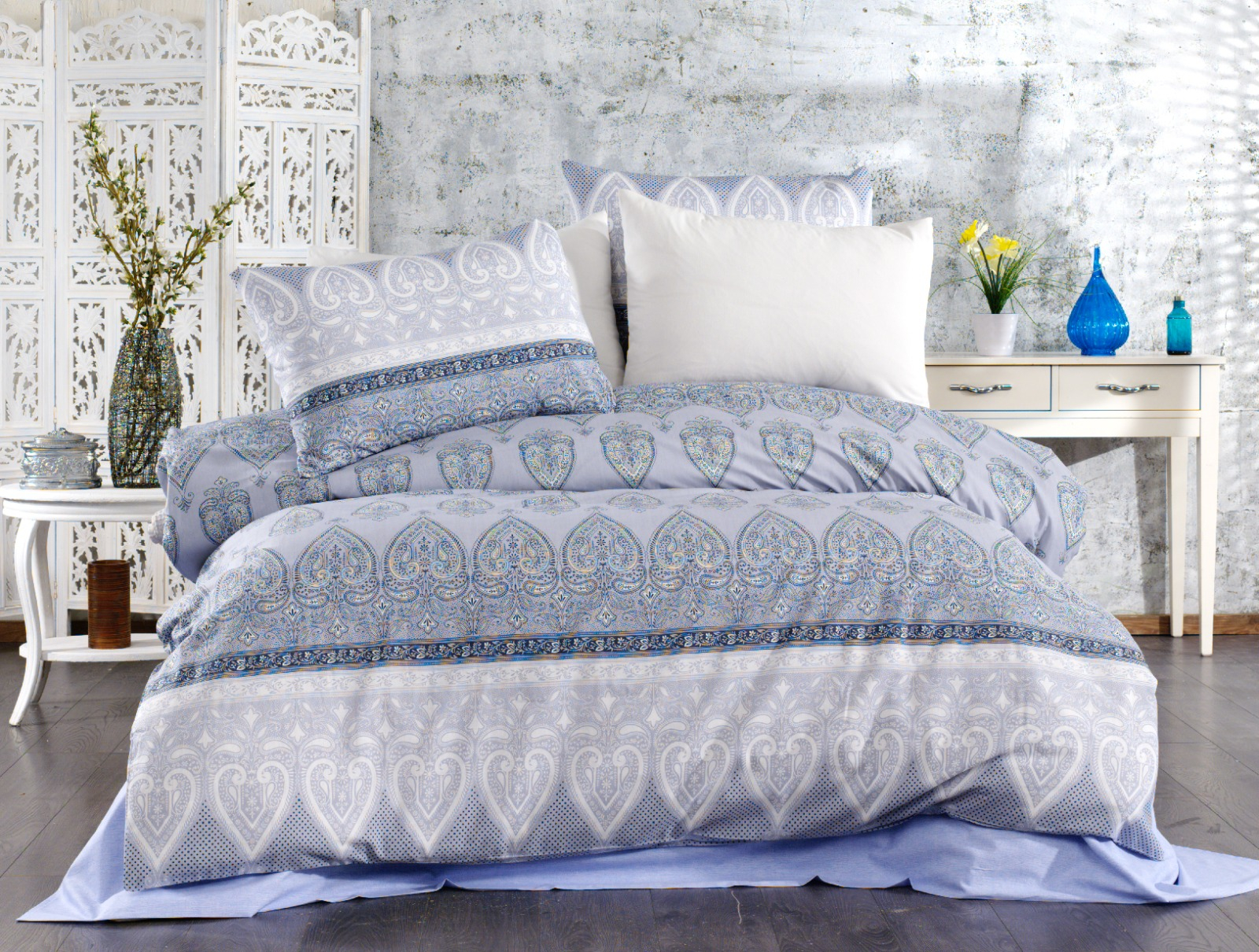 Materialul nu intra la apa, nu se scurteaza, nu sufera modificari in timp fiind tratat special in acest sens.Material foarte confortabil, ideal in orice anotimp, elegant, placut la atingere.Lenjeriile de pat confectionate din ranforce satinat au un aspect placut, imprimeuri deosebite si dau o nota de eleganta dormitorului dvs.