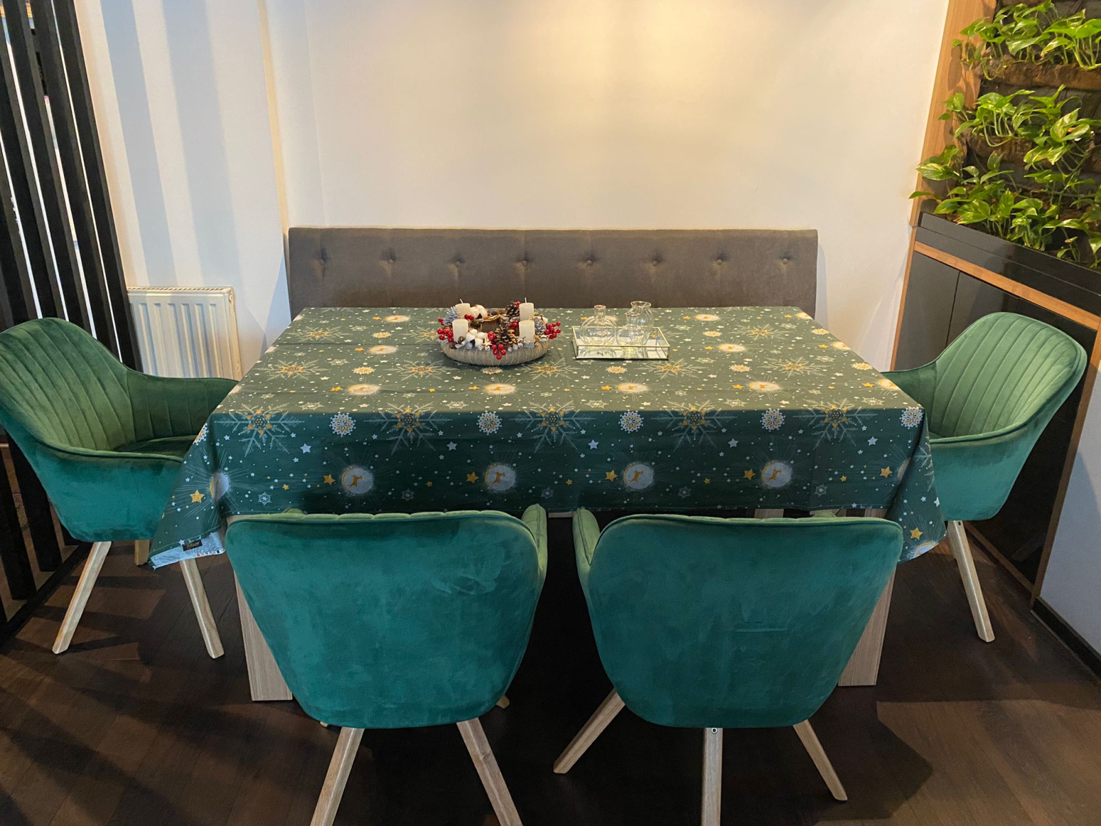 Vreti un element de decor care sa aduca spiritul Craciunului mai aproape de voi Atunci aveti nevoie de o fata de masa de Craciun cu elemente de decor, simpatica si atragatoare pentru toti oaspetii care va vor insoti la festin. Fata de masa este potrivita pentru bucatarie sau living aducand o nota de rafinament si eleganta mesei dumneavoastre. Masa de Craciun nu va arata niciodata mai vesela si mai simpatica decat atunci cand este imbracata in straie de sarbatoare. Iar recomandarea noastra este o fata de masa cu detalii vesele, reprezentand simbolurile Craciunului.