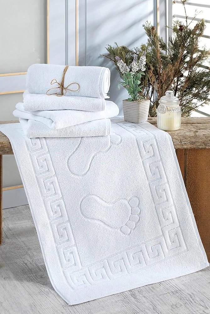 Prosopul de picioare model grecesc, bumbac 100%, Alb realizat cu o calitate premium, greek border 100% bumbac pakistanez. Calitatea renumita a bumbacului pakistanez, de un alb optic imaculat, confera prosoapelor o capacitate de absorbtie mai mare, durabilitate si mai ales finete. Sinonim cu confortul si relaxarea, pe care fiecare isi doreste sa le aiba in casa.