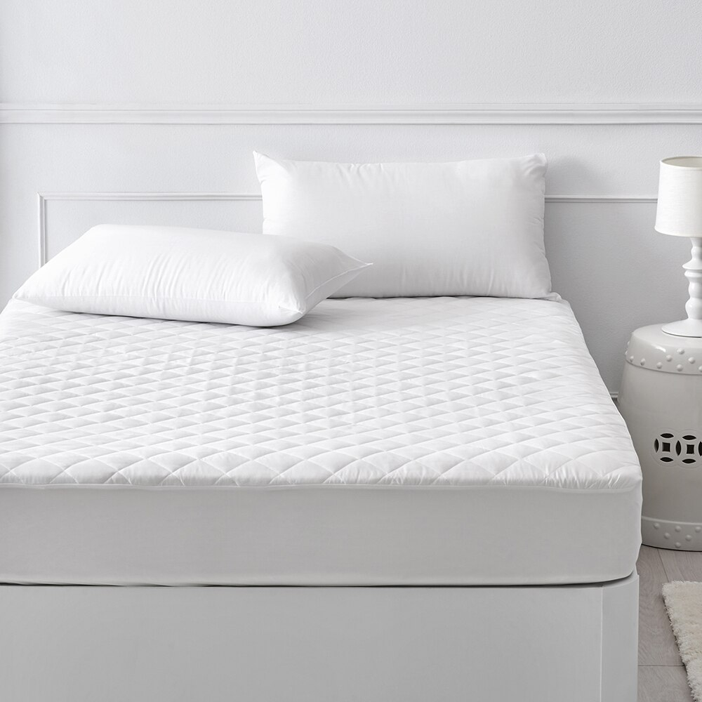 Protec ia de saltea matlasata impermeabila este matlasata cu ata pe toata suprafata avand aplicat pe dos o membrana de poliuretan impermeabil care lasa totodata materialul sa respire.Se fixeaza pe saltea i mbraca perfect salteaua, at t pe fata c t i laterale (lateralele fiind din tesatura jersey) av nd elastic de jur mprejur(inaltimea saltelei pana in 24 cm). Astfel, protectia impermeabila ram ne toata noaptea perfect ntinsa pe pat. Designul elegant i calitatea materialului fac ca aceasta sa fie o alegere perfecta