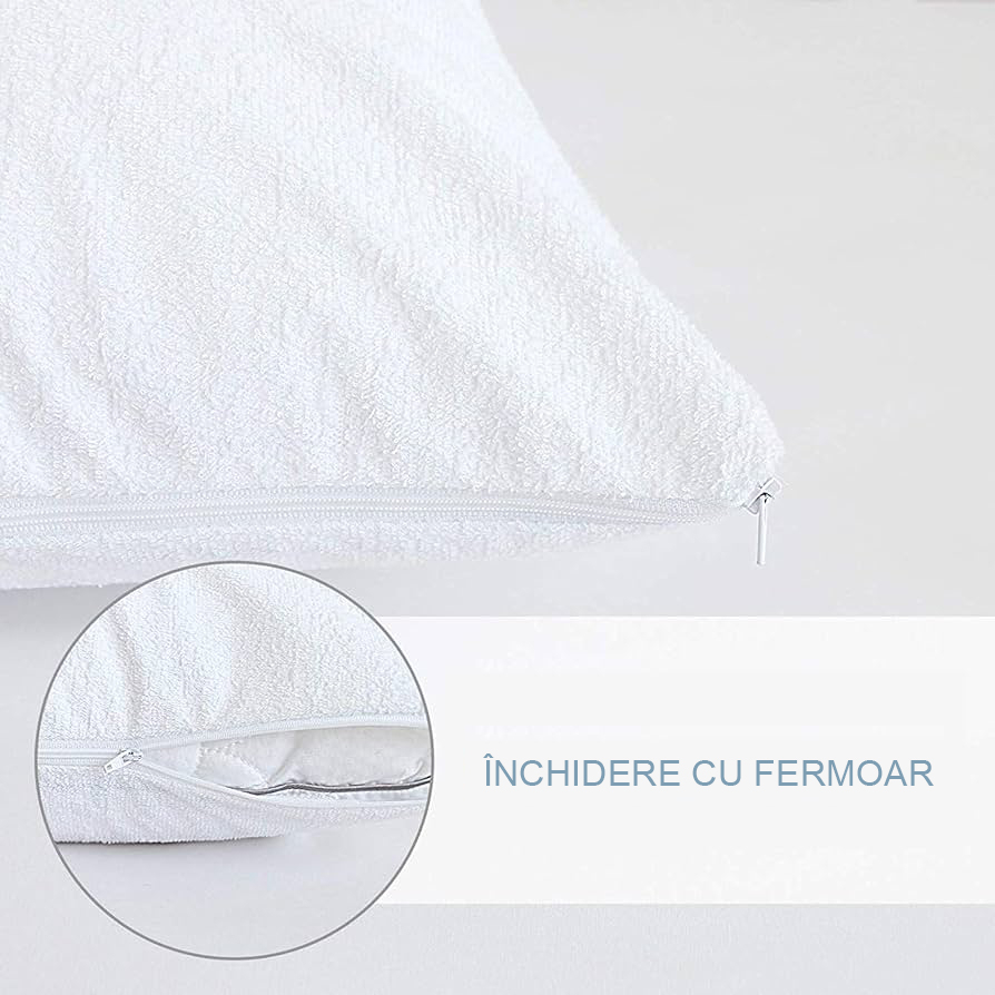 Husa perna cu fermoar impermeabila este confectionata dintr-un material de calitate frotir avand aplicat pe dos o membrana de poliuretan impermeabil care lasa totodata materialul sa respire.Aceasta husa imbraca perfect perna, avand fermoar pe una din laturi. Designul elegant i calitatea materialului fac ca aceasta sa fie o alegere perfecta